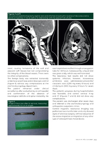 Image of the screw after its removal, measuring and referred to the otorhinolaryngology and
