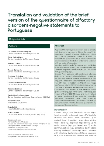 Centro Hospitalar do Tâmega e Sousa Materials and Methods: Translation and validation