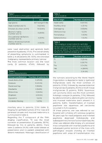 table 2. In all patients (19, 100%), the sinonasal TNM staging Number of patients (%)