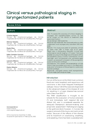 Hospitalar de Vila Nova de Gaia/Espinho, Portugal Keywords: Laryngeal cancer, total laryngectomy,