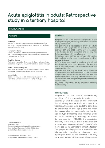 Lisboa Norte, Portugal admitted with epiglottitis in a tertiary hospital,