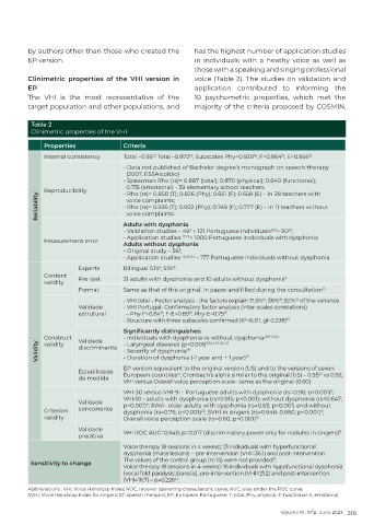 Clinimetric properties of the VHI version in voice (Table 2). The studies on validation and