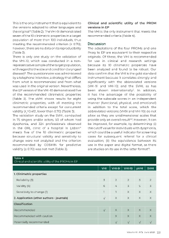 validity (r =0.412, lower than 0.70) (Table 3). abbreviated versions (VH9i and VHI-10) do not