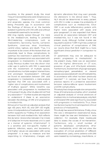 progression to mediastinitis, a meta-analysis reported 8, 11 . In contrast, we have found no