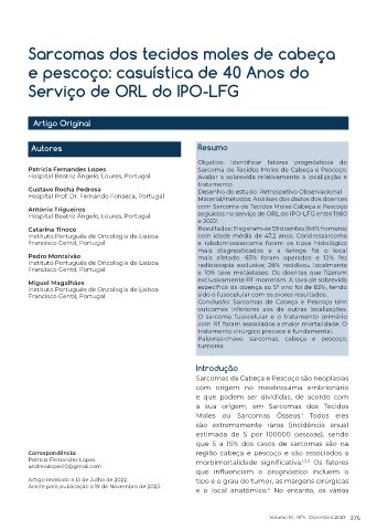 Patrícia Fernandes Lopes Sarcoma de Tecidos Moles de Cabeça e Pescoço.