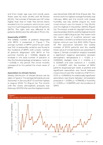 was 3.42. A seasonality variation was found in number of BPPV patients and the weekly
