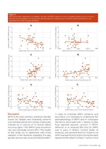 The association between the weekly number of BPPV patients and the weekly mean value of climate