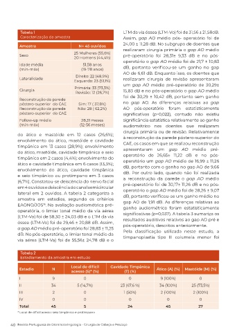 lateral em 2 ouvidos. A tabela 2 categoriza a operatório o gap AO médio foi de 28,26 ± 9,07