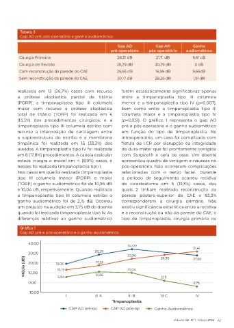 ganho audiométrico foi de 2,15 dB. Ocorreu corresponderam a cirurgia primária. Não