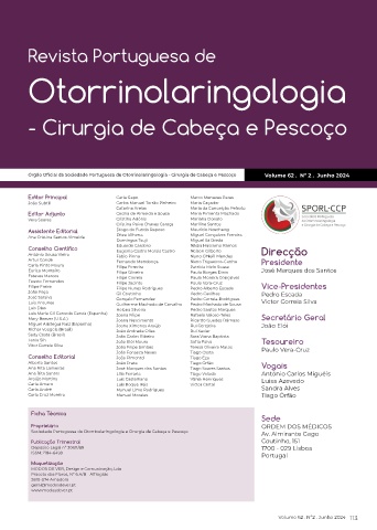 Órgão Oficial da Sociedade Portuguesa de Otorrinolaringologia - Cirurgia de Cabeça e Pescoço Volume 62 . Nº 2 . Junho 2024