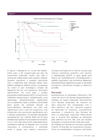 A figura 2 representa as curvas de Kaplan- cirúrgico (Laringectomia Total) e o grupo que