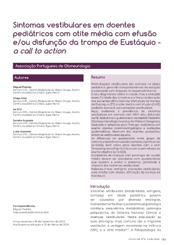 Aceite para publicação a 29 de Março de 2024. vestibular, a vertigem recorrente na infância