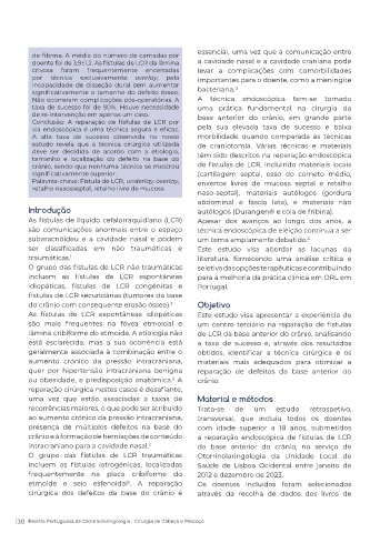são mais frequentes na fóvea etmoidal e um centro terciário na reparação de fístulas