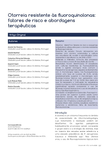 André Sá Pereira terapêuticos adequados para a otorreia resistente