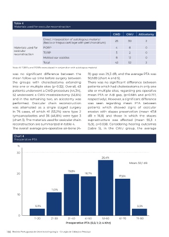 performed. Ossicular chain reconstruction was seen regarding mean PTA between