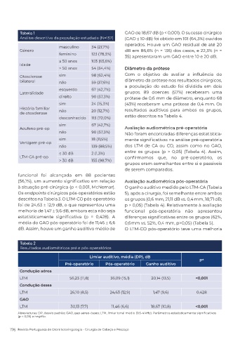 Tabela 1 GAO de 18,67 dB (p < 0,001). O sucesso cirúrgico