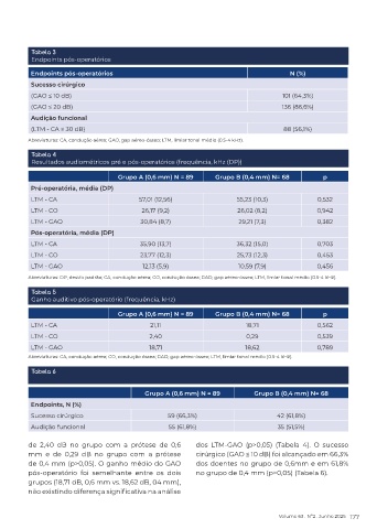 de 2,40 dB no grupo com a prótese de 0,6 dos LTM-GAO (p>0,05) (Tabela 4). O sucesso